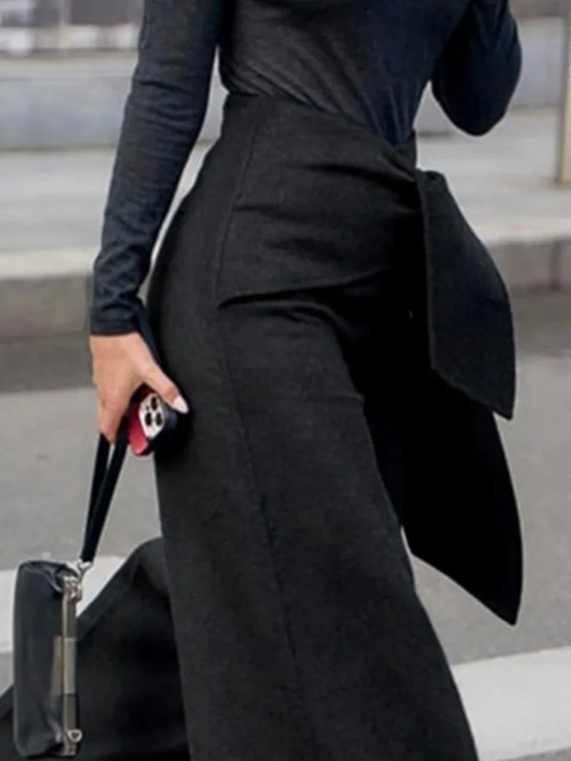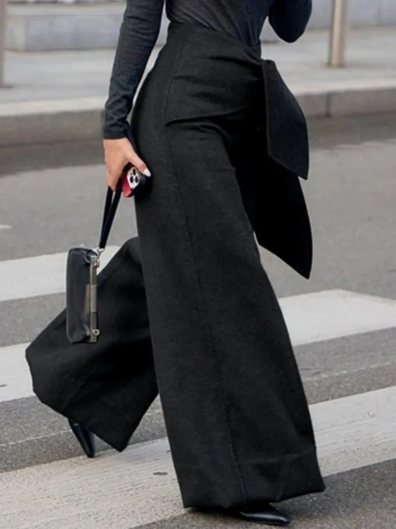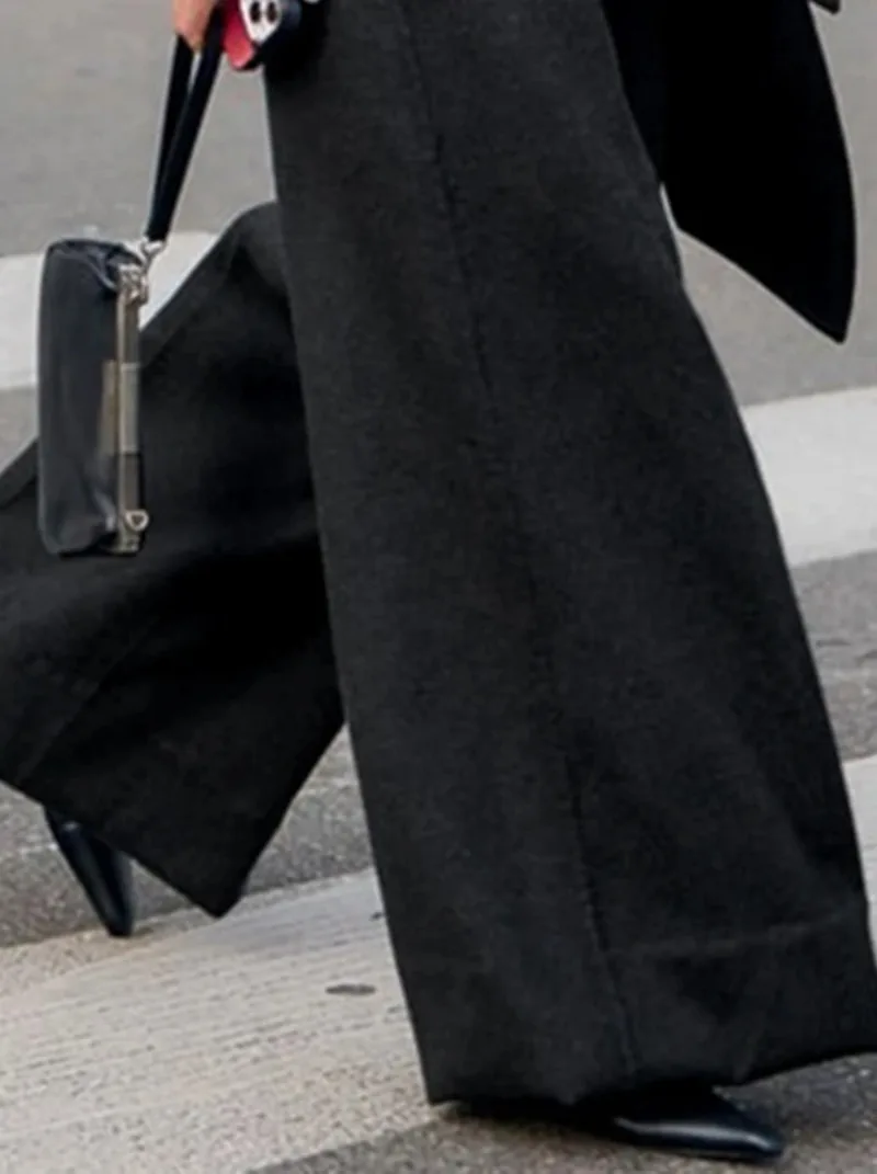 Tinaa Asymmetric Women’s Pants 2025 Autumn Winter New Business Tweed Wide-leg Stretch Back Waist Pockets Trousers 178666